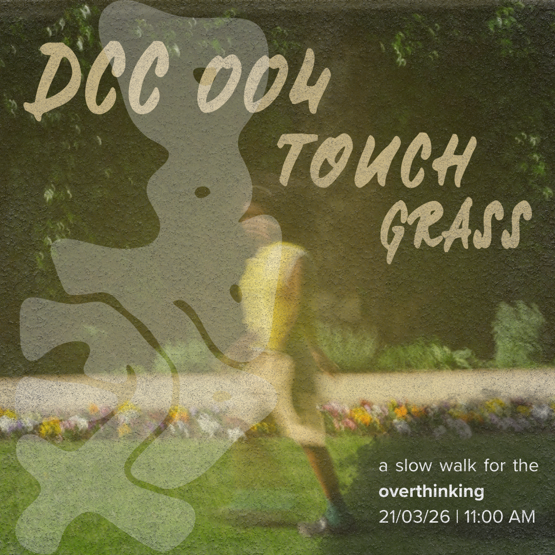 TOUCH GRASS is a slow group walk for people whose thoughts won't settle, who want space for their minds to move without having to explain, perform, or figure it out.